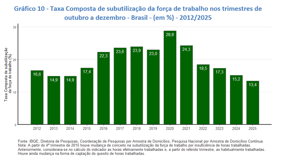 | Taxa de subutilização | 13,4% | 13,9% | 15,2% |